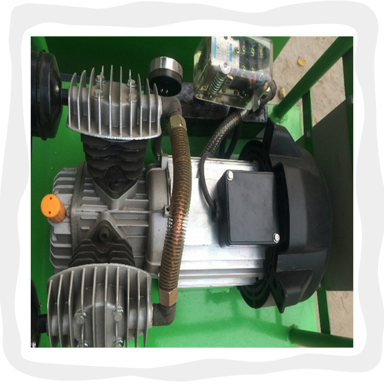 11、喷浆输送管一旦堵塞,将开关转换到手动位置,只开压缩机,将泵头前快速接头卸下,而后将喷头朝下堵实,风压产生反向压力,将输送管余浆吹出,在将快速接头装上,开始正常工作。