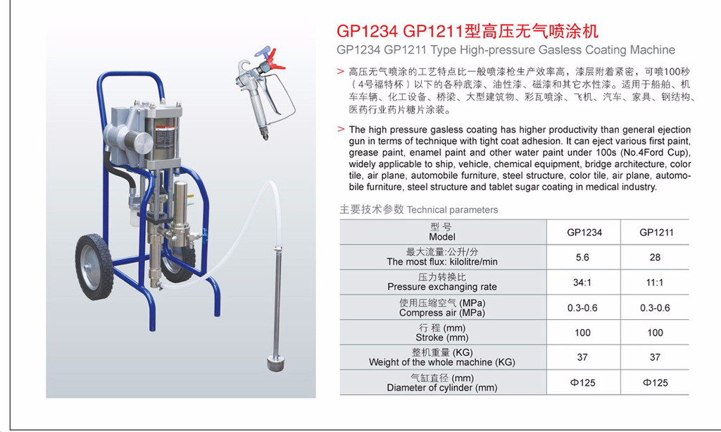 上海洪申GP1234高压无气喷涂机 钢结构喷涂机 轻防腐气动喷涂机