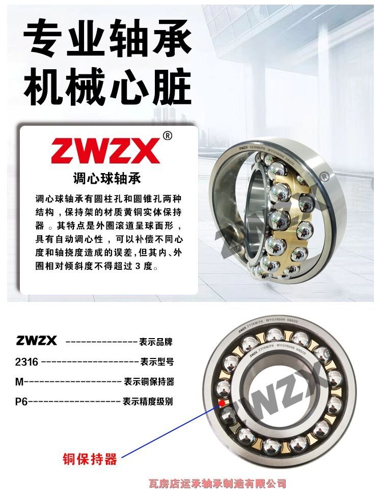 调心球摩托车型号2303M铜卡尺寸17*47*19瓦房店双列球