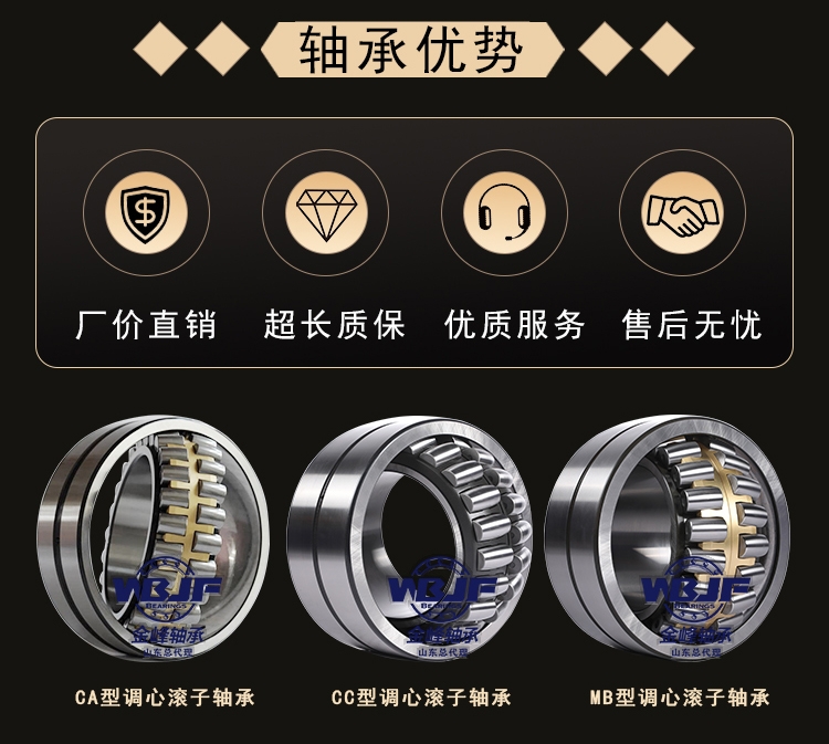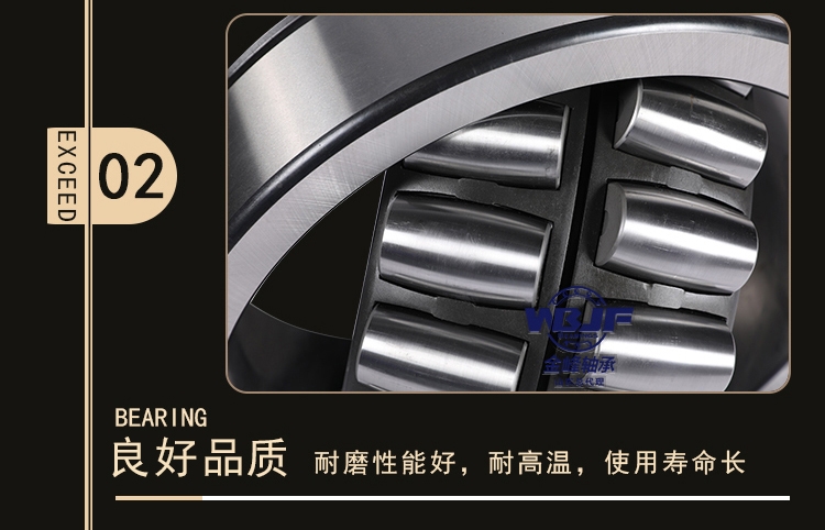 瓦房店金峰调心滚子轴承可承受较大的径向载荷,同时也能承受一定的轴向载荷。该类型外圈滚道是球面形,故具有调心性能,当轴受力弯曲或倾斜而使内圈中心线与外圈中心线相对倾斜不超过1~2.5度时,轴承仍能工作。调心滚子轴承内孔有圆柱形和圆锥形两种。圆锥形内孔的锥度为1:12或1:30.为了加强轴承的润滑性能,在轴承外圈上加工环形油槽和三个均布的油孔。