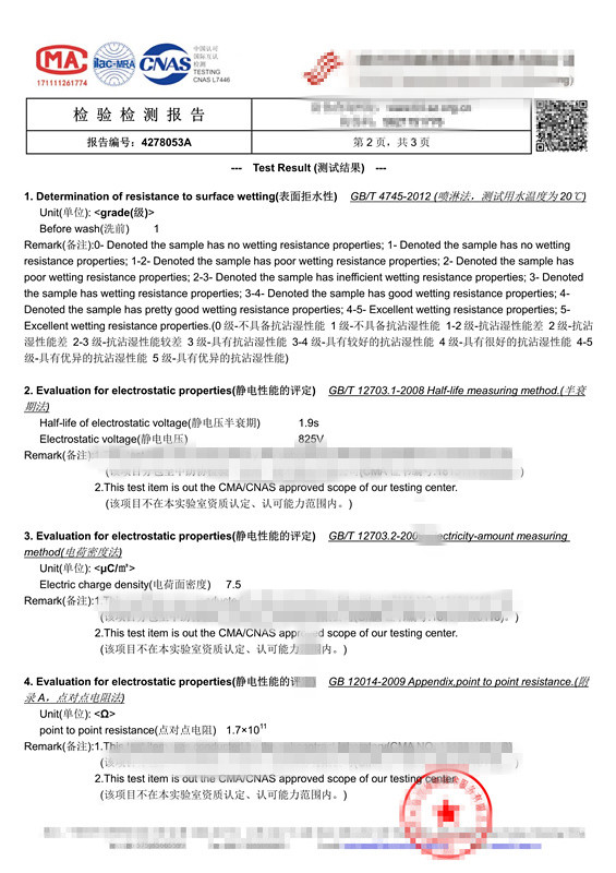 | 静电压半衰期(s) | 0.4 | GB/T12703.1-2008半衰期法 |