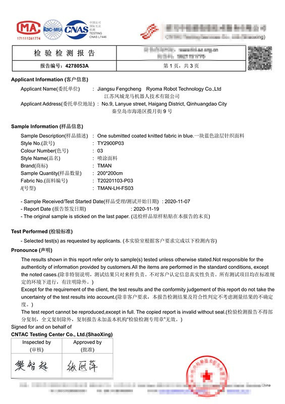 3. 良好伸缩性:喷涂机器人灵活活动部位及伸缩部位,由专业特殊设计,避免喷涂机器人多角度转动时撕裂喷涂机器人防护服。
