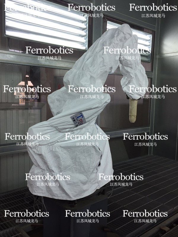 喷涂机器人代替人力操作,可提高喷涂质量和材料的使用率,但是由于长期操作,喷涂材料中的各类化学成份也将侵害机器人的手臂。特别是油漆泵,喷涂机器人在工作过程中,机器人本体不可避免地处于油漆喷雾易爆环境中,安装喷涂机器人防护服使机器人隔离静电、粉尘、易燃物的措施异常重要。