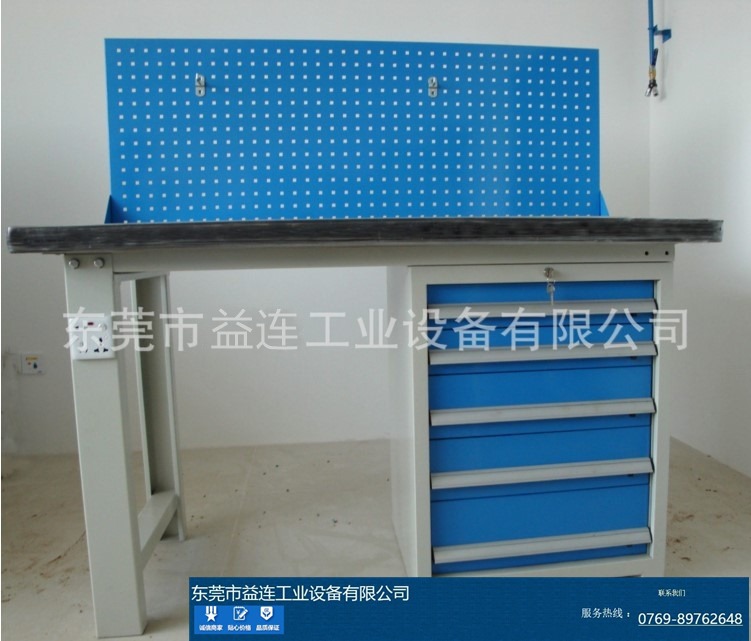 5、桌下可选配各种类型的工具柜,加装工具柜后,更能合理地利用空间,存放保护工具。可直接在工作桌上加装台钳。满足用户装载物品的需求。