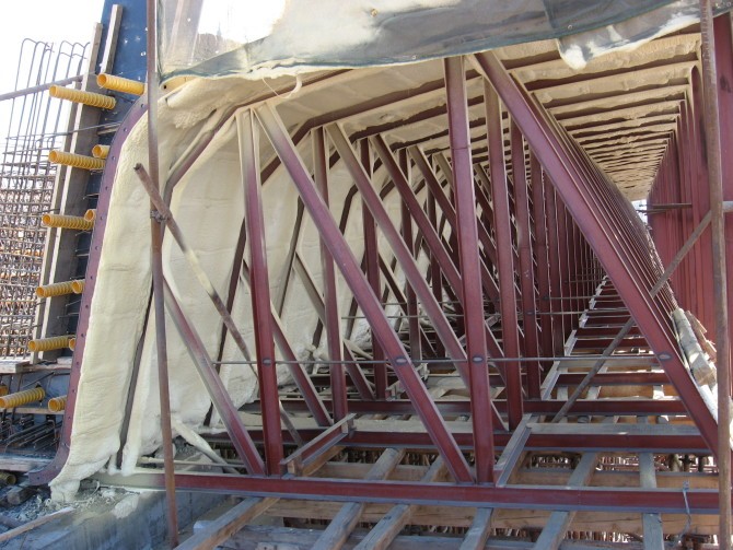 ??4.地下室外墙保温防水,是发泡聚氨酯大显身手的部位,既能保温、防水,又省去其他保护层,一举二得。