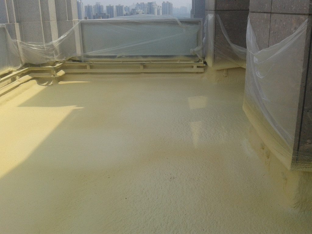 ??2.发泡聚氨酯喷涂成型速度快,不易喷得非常平整,凹凸不平属于正常的。用于屋面防水保温,平整度可放宽,但檐沟、天沟平整度不好,会影响排水流速。