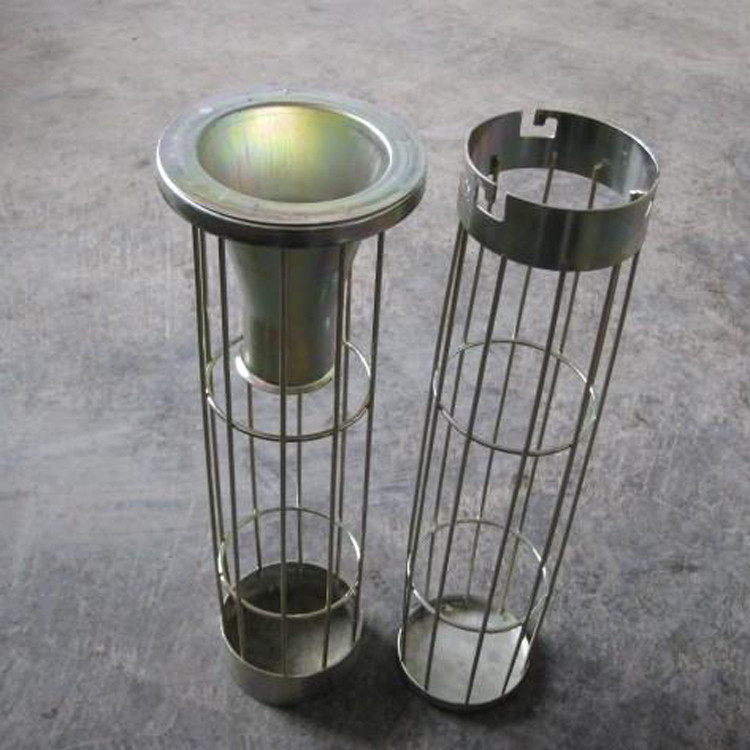 1、除尘器骨架采用圆型结构,袋笼的纵筋和反撑环分布均匀,并有足够的强度和刚度,防止损坏和变形,顶部加装冷冲压短管,用于保证袋笼的垂直及保护滤袋口在喷吹时的安全。