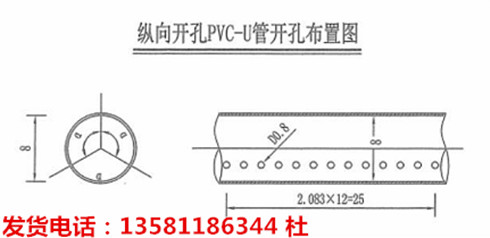 纵向PVC-U排水管Φ8、横向PVC-U排水管Φ8、打孔渗水管(车间事情多,询价请电联)【产品规格】:DN20-630MM,Φ8;设置三排孔,沿管周边等间隔排列。每排每延米设孔口48个,孔口直径0.5cm