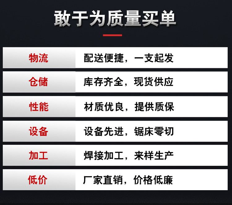 | 不锈钢钢管是一种中空的长条圆形钢材,主要广泛用于石油、化工、医疗、食品、轻工、机械仪表等工业输送管道以及机械结构部件等。另外,在折弯、抗扭强度相同时,重量较轻,所以也广泛用于制造机械零件和工程结构。也常用作家具厨具等。 |