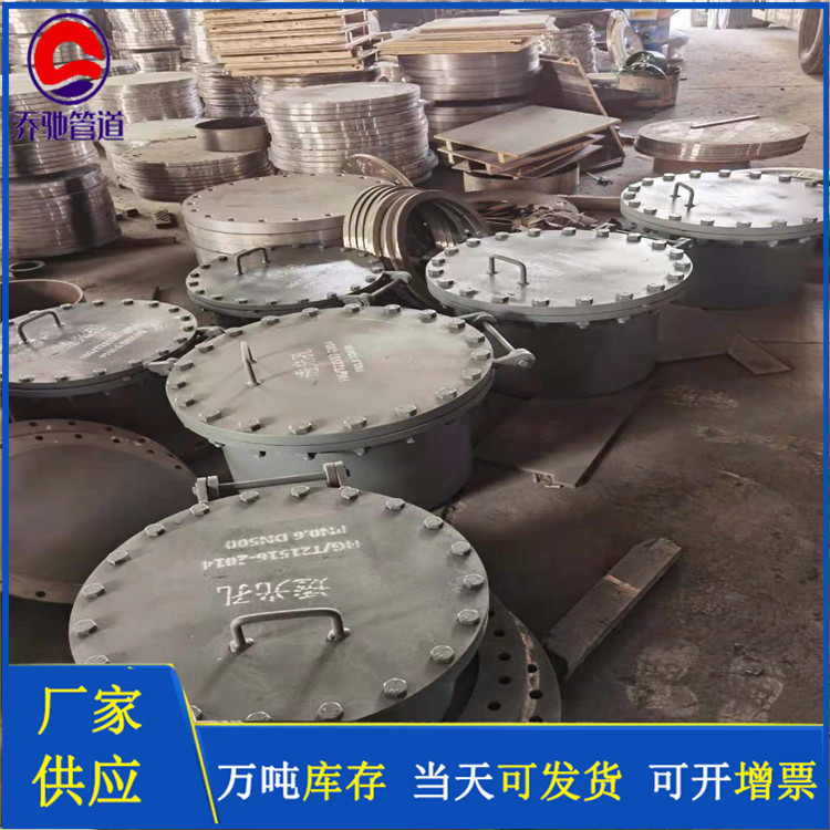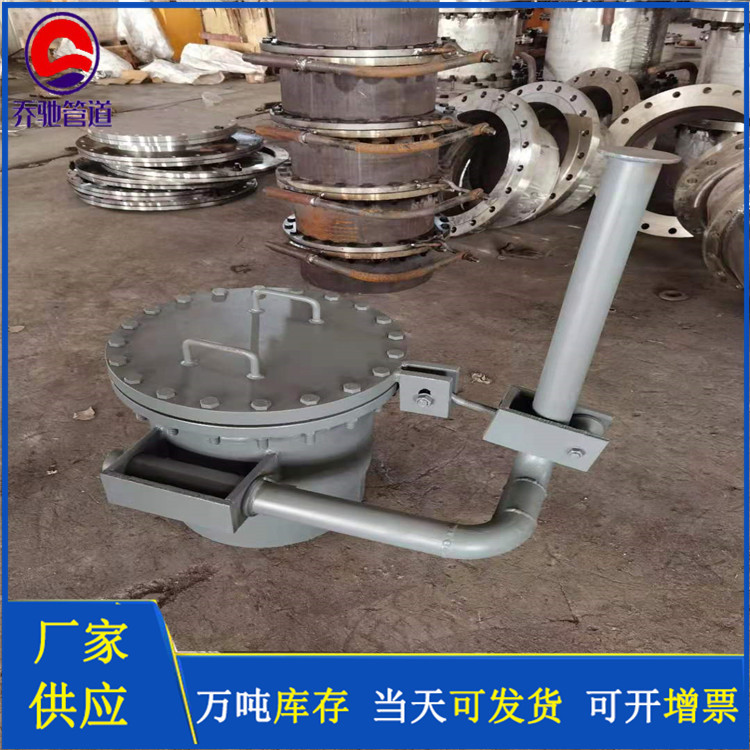 人孔是安装在储罐顶上的应急通气装置,通常与防火器、机械呼吸阀配套使用,既能避免因意外原因造成罐内急剧超压或真空时,损坏储罐而发生事故,又有起到阻火作用,是保护储罐的装置,特别适用于贮存物料以封顶的拱顶常压罐。具有定压排放、定压吸入、开闭灵活、阻火、结构紧凑、密封性能好、可靠等点。人孔分为紧急泄压人孔、防爆阻火呼吸人孔、罐顶人孔、罐壁人孔和带芯人孔等。人孔的技术要求应符合HGT21514中:“水平吊盖板式平焊法兰人孔”按照HGT21514中的规定,工称压力PN0.6水平吊盖板式平焊法兰人孔公称直径DN450、H1=285、Ⅰ类材料其中采用六角头螺栓、非金属平垫(不带内包边的XB350石棉橡胶板)的水平吊盖板式平焊法兰人孔,其标记符号为:人孔Ⅰb-88 (NM-XB350)(非标准尺寸)的上例人孔,其标记符号为: 水平吊盖板式平焊法兰人孔: 人孔Ⅰb-88 (NM-XB350) 水平吊盖板式平焊法兰人孔注意事项: 表中的工作温度和高无冲击工作压力仅适用于不包括螺栓(柱)和垫片在内的人孔各受压零件。螺栓(柱)和垫片的压力、温度适用范围应按相应紧固和垫片标准确定。水平吊盖人孔是安装于储罐壁下部,是制作工人在建罐、清罐、倒罐时的出入口,而人孔的强度和密封是技术关键。水平吊盖人孔主要安装于罐顶,供工人进出口用。