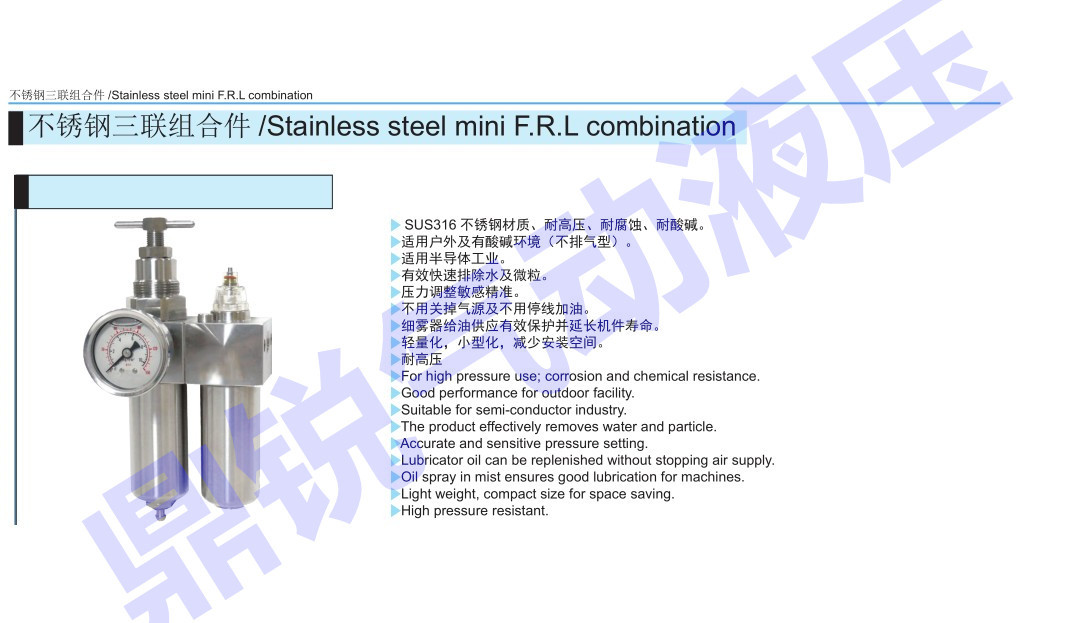 l 内置5微米滤网,可以过滤气源中的微小颗粒,并且可以通过排水盖排出凝集水。
