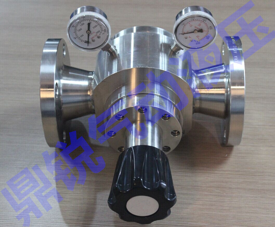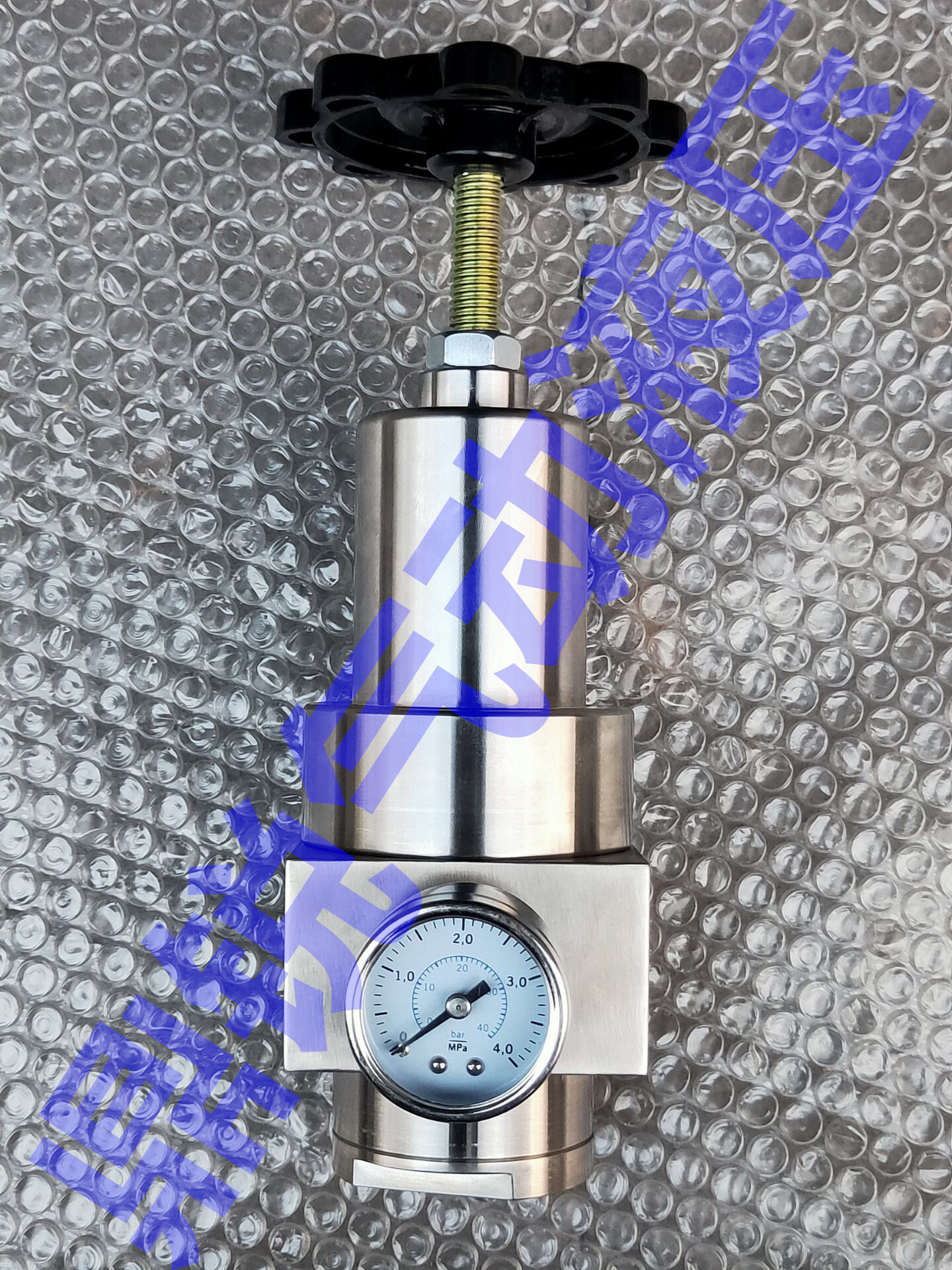 2、压力调节时,在转动旋钮前请先拉起再旋转,压下旋转钮为定位。旋转钮向右为调高出口压力,向左旋转为调低出口压力。调节压力时应逐步均匀地调至所需压力值,不应一步调节到位。