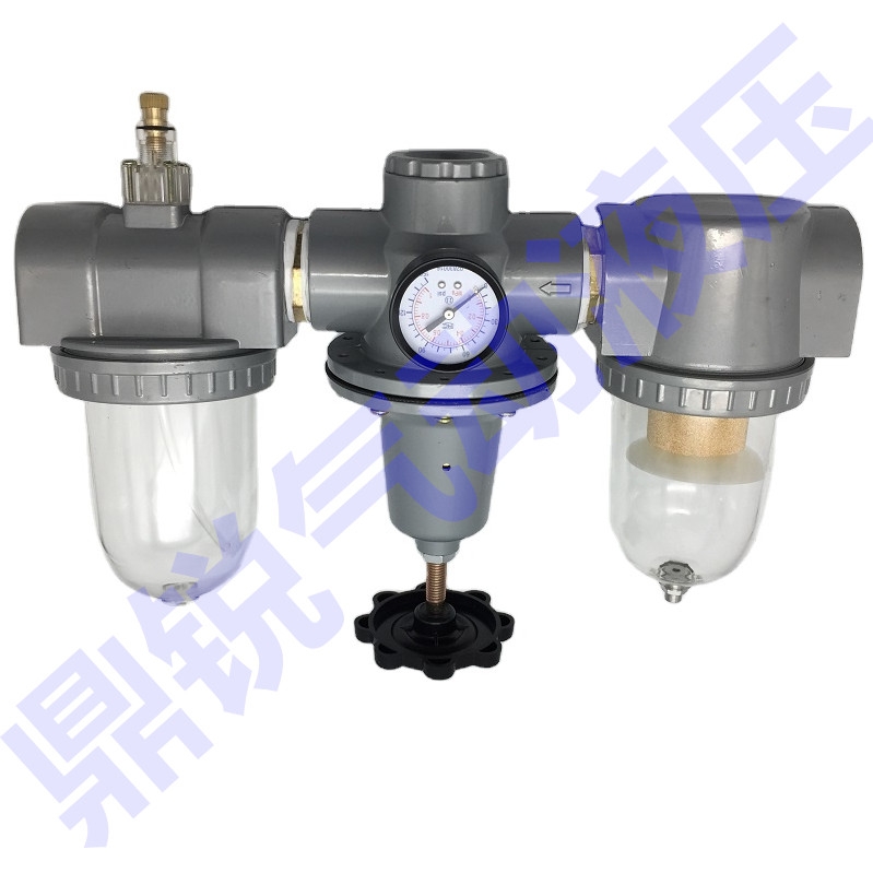 减压阀可对气源进行稳压,使气源处于恒定状态,可减小因气源气压突变时对阀门或执行器等硬件的损伤。过滤器用于对气源的清洁,可过滤压缩空气中的水份,水份随气体进入装置。
