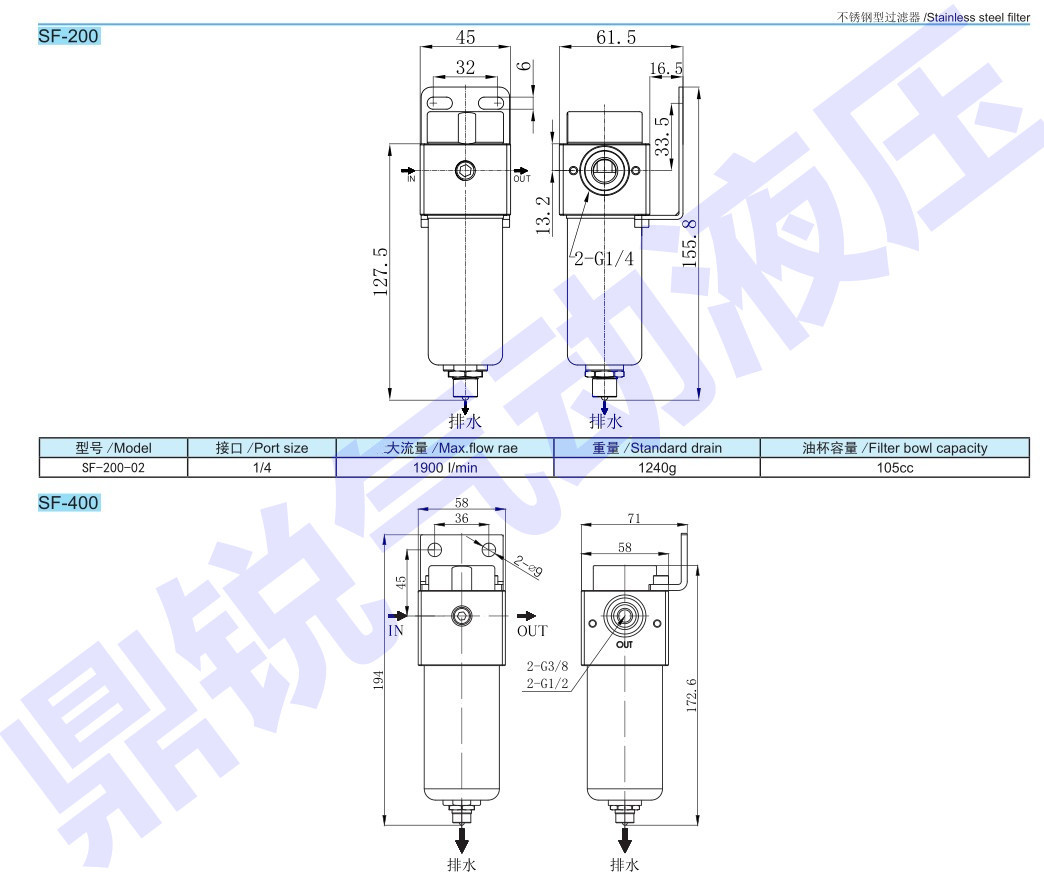 l 内置5微米滤网,可以过滤气源中的微小颗粒,并且可以通过排水盖排出凝集水。