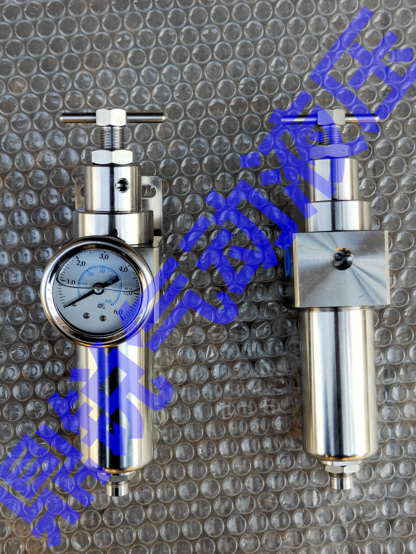 减压阀可对气源进行稳压,使气源处于恒定状态,可减小因气源气压突变时对阀门或执行器等硬件的损伤。过滤器用于对气源的清洁,可过滤压缩空气中的水份,水份随气体进入装置。