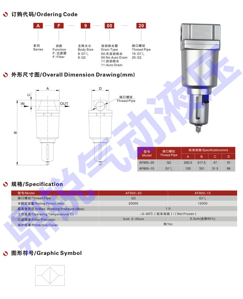QTY-8、QTY-10、QTY-15、QTY-20、QTY-25、QTY-32、QTY-40、QTY-50。空气过滤器: