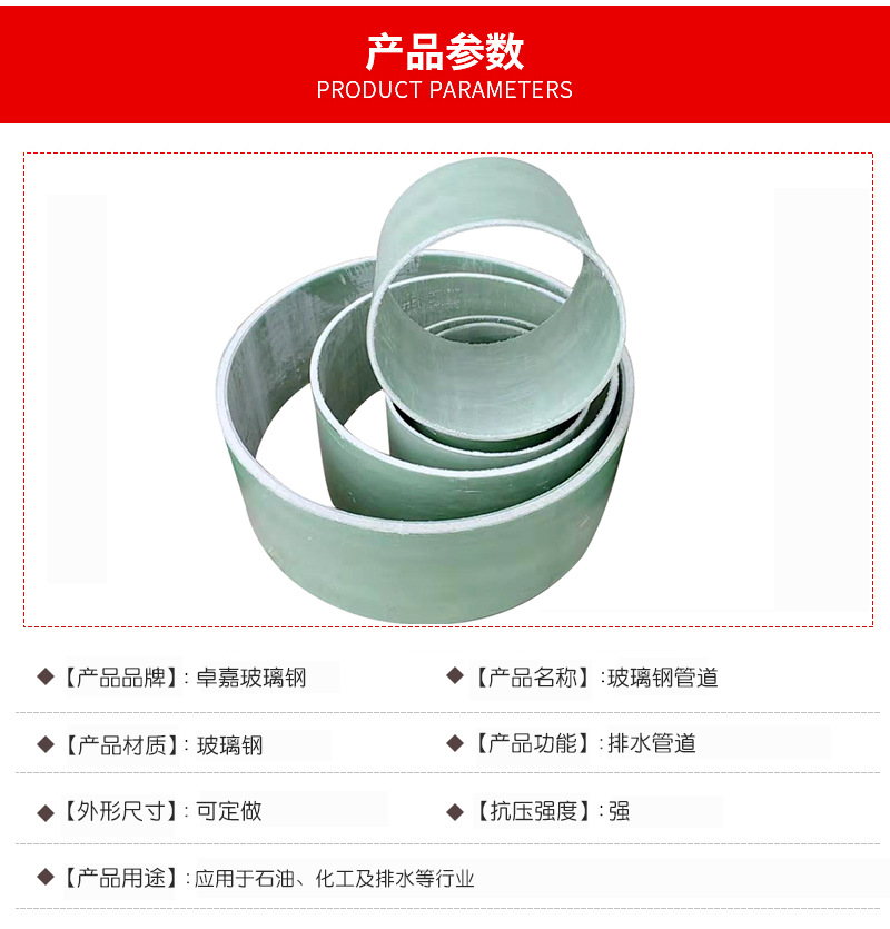 崇左压力通风管道 卓嘉玻璃钢管件 玻璃钢管道价格表