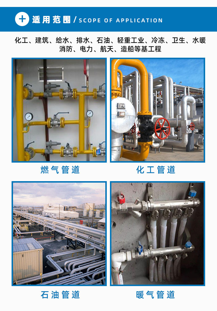 本公司开发研制的各种弯头、法兰等管件系列产,为燃气、热力、核电、力、石油、化工、医药、航天、军工、消防、冶金、造船、城建、水暖及环境保护等行业提供了贴心的服务。先后被选为定点、协作企业。