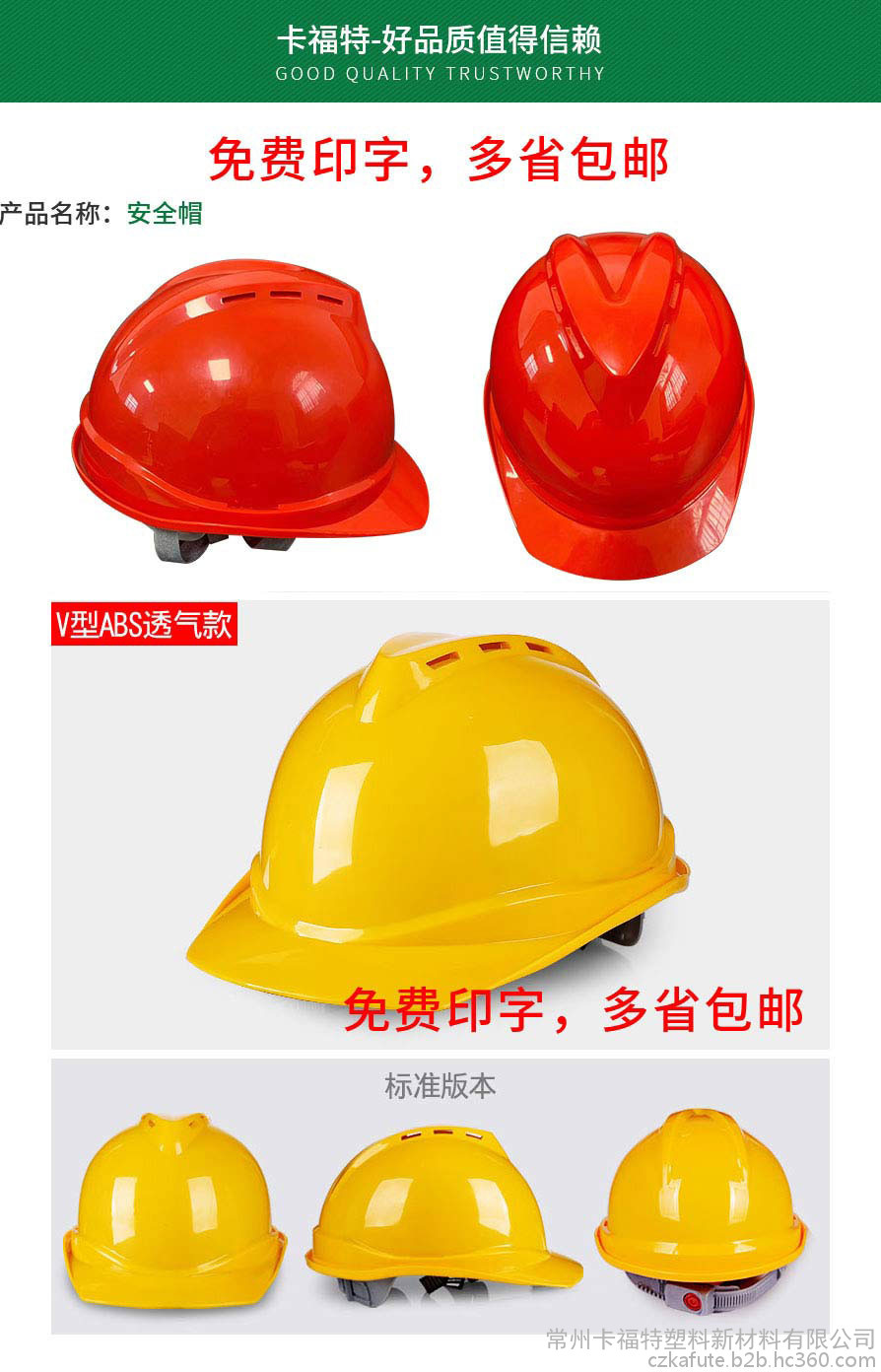 常州卡福特塑料新材料有限公司专 业生产安全帽。