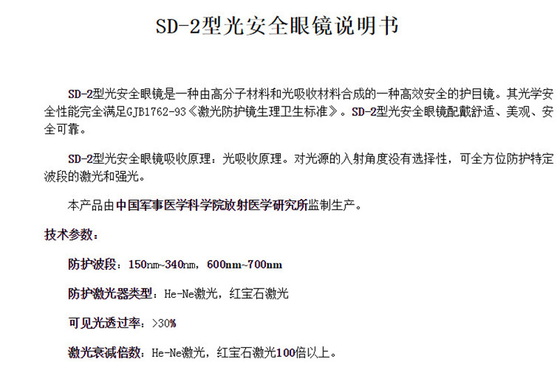 希德SD-2激光眼镜600-700nm波长632.8He-Ne激光器防红光护目镜