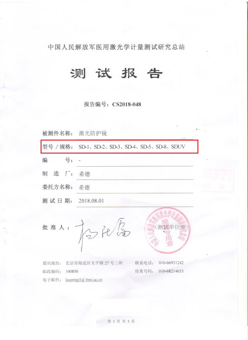 希德SD-3激光防护眼镜防1064nm波段波长防Nd:YAG激光器安全护目镜
