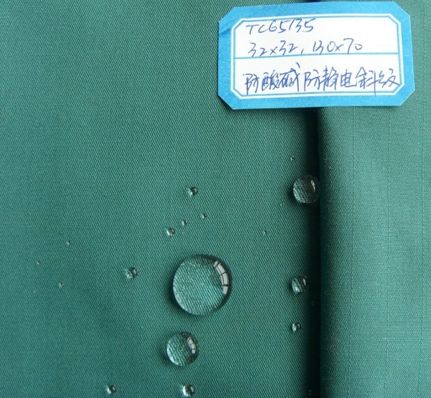 我公司的防酸碱面料采用定制的整理剂经特殊工艺处理,使织物表面排斥、耐受酸类介质的伤害。