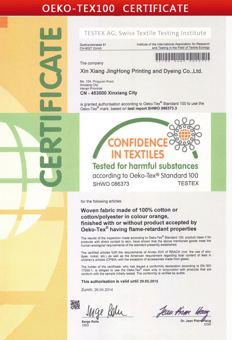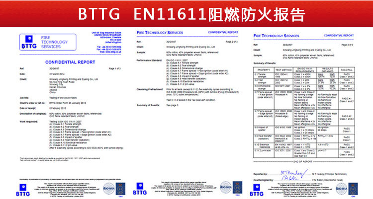 阻燃性能均能达到国标GB8965-98《阻燃防护服》要求,同时经SGS、TUV、BTTG等权威机构检测,同时可达到欧盟“EN531、EN533、EN470-1”等标准,达到欧共体、美国、英国一级品要求,产品远销欧洲、美国、日本、东南亚等国。