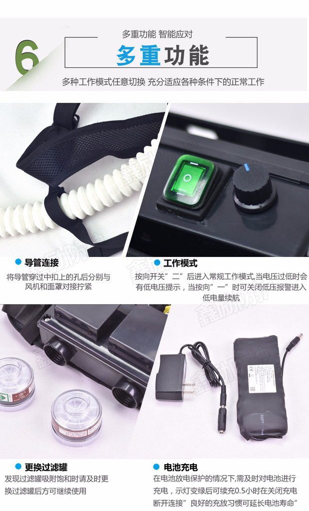 新款上市,具有体积小.功能强.风量/风压大<可调>.双罐过滤.便携带.续航时间长.佩戴舒适等优点。默认发“XLA6-TF-AL套件”。正规专业厂家。可加税点开专票,欢迎同行咨询合作。标配为普通款过滤罐,如需高密度大容量过滤罐请咨询客服补差价即可!!