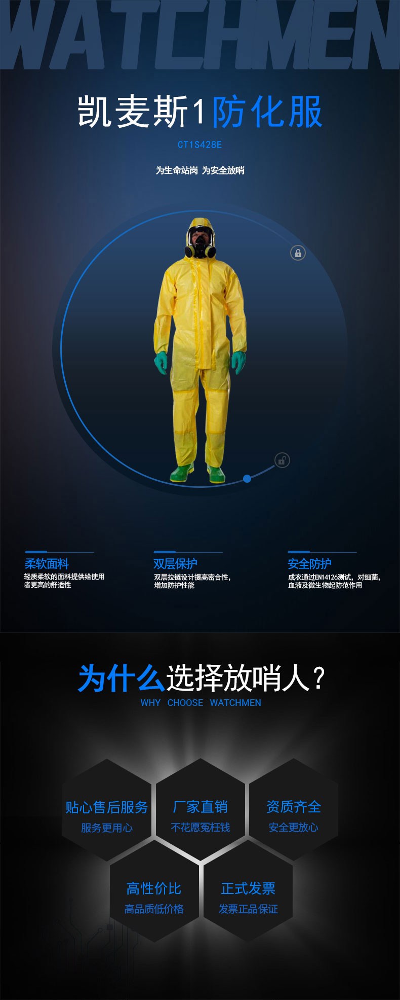成衣通过EN14126测试,对细菌,血液及微生物起防范作用。