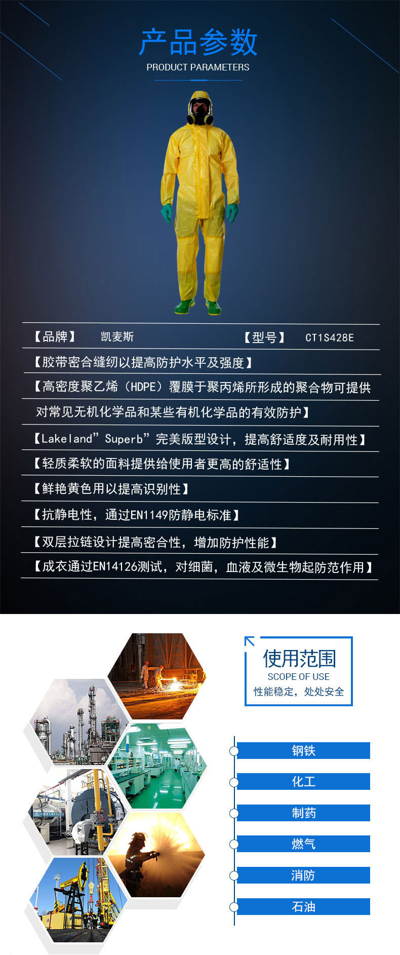 雷克兰CT1S428E凯麦斯1防化服