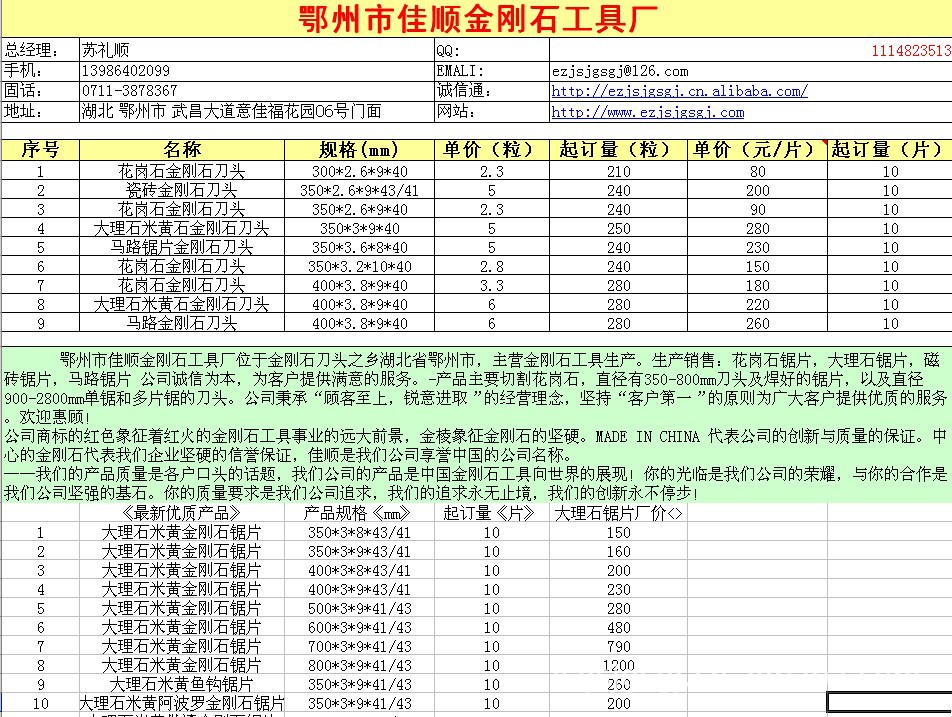 | 品牌 | 鄂州市佳顺金刚石工具 |