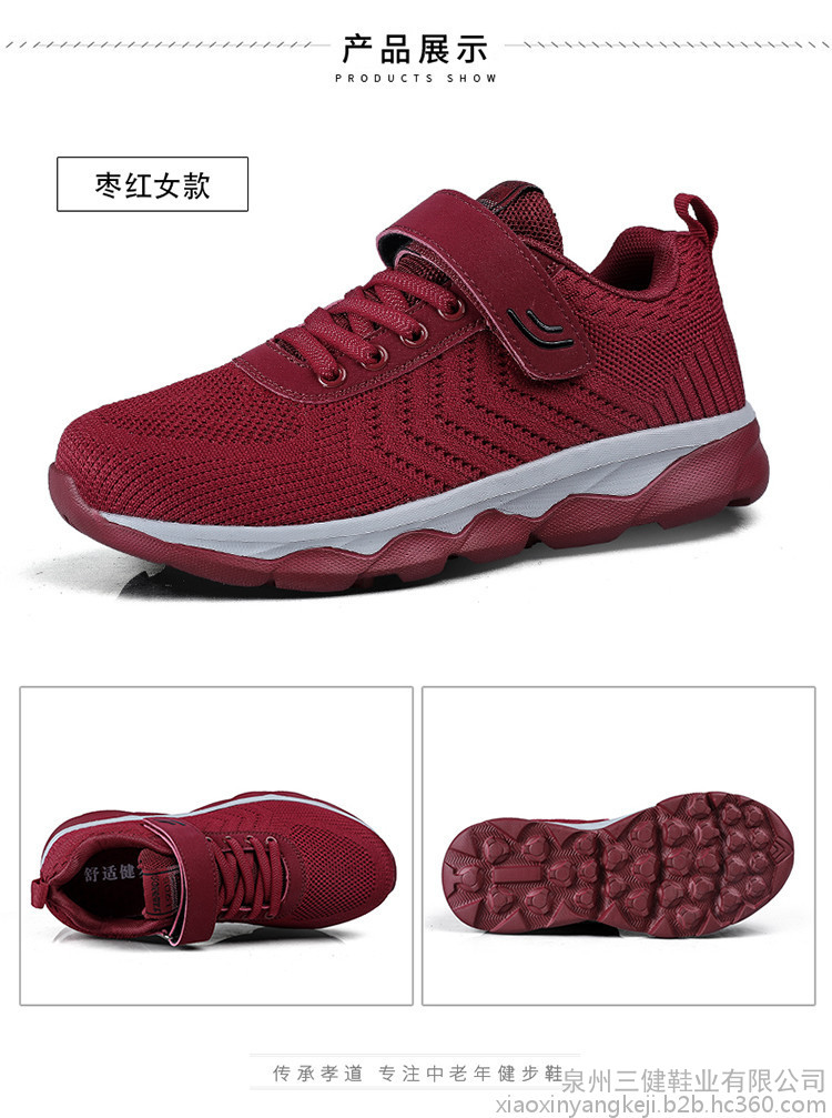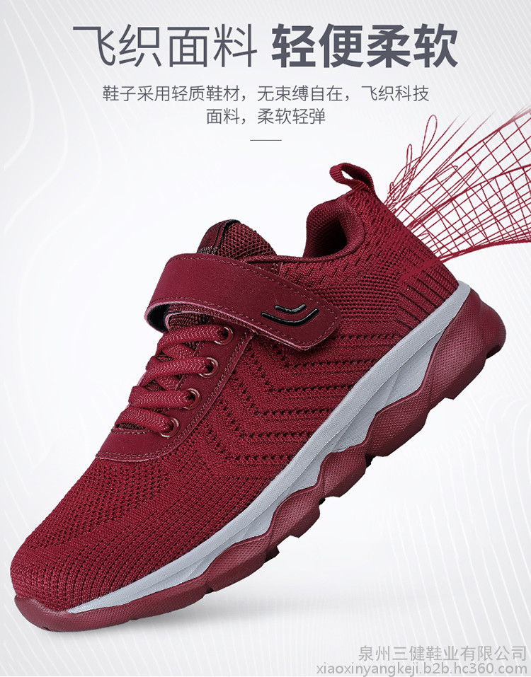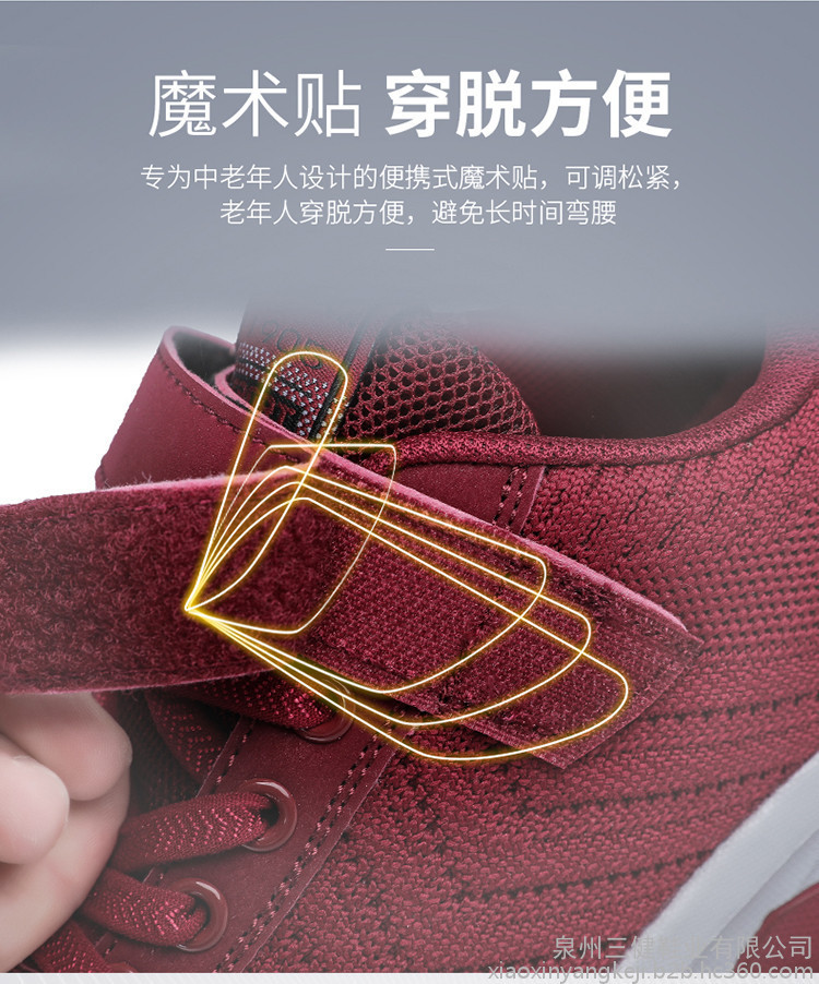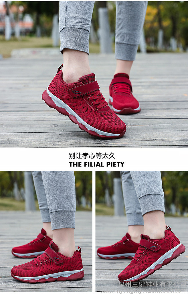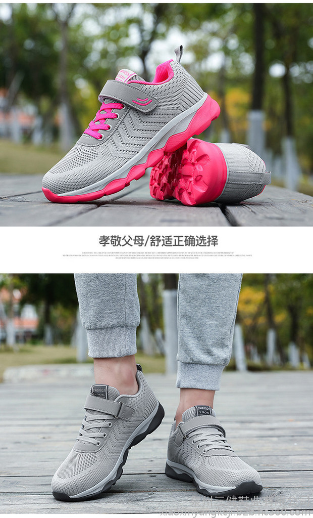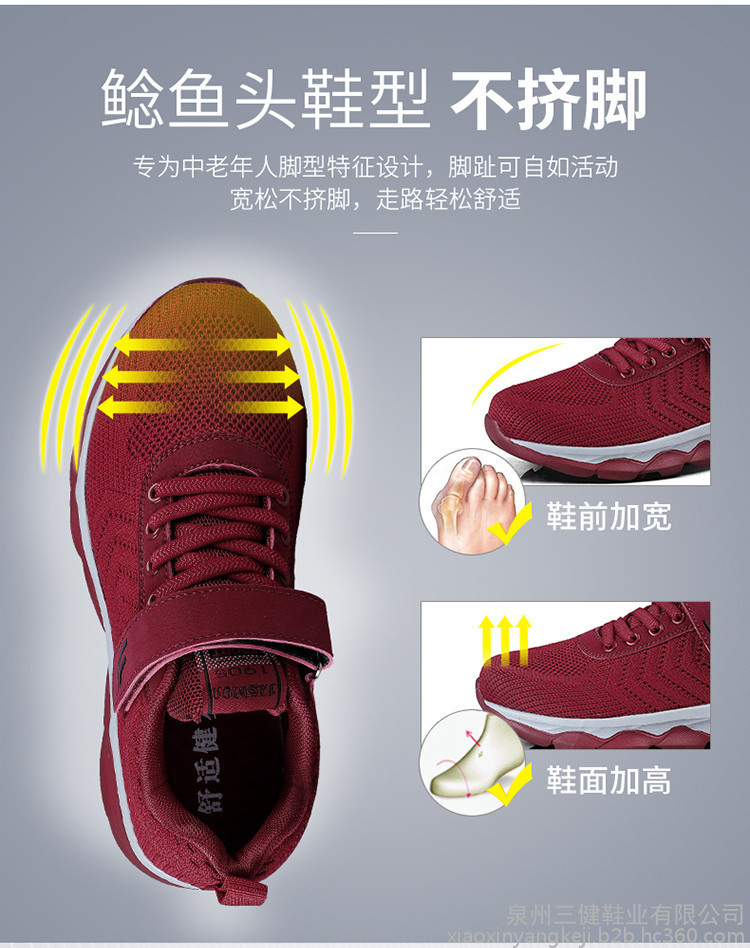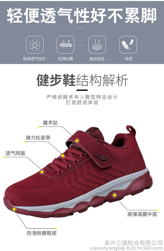 【产品优势】?镂空设计,美感十足,内置透气鱼丝,超轻便,超耐磨,超防滑,加宽鞋面,蜂窝鞋垫,穿起舒适,不挤脚,对脚踝的保护尤为重视,鞋底橡胶大底防止老人摔倒,保护双脚,关爱老人。