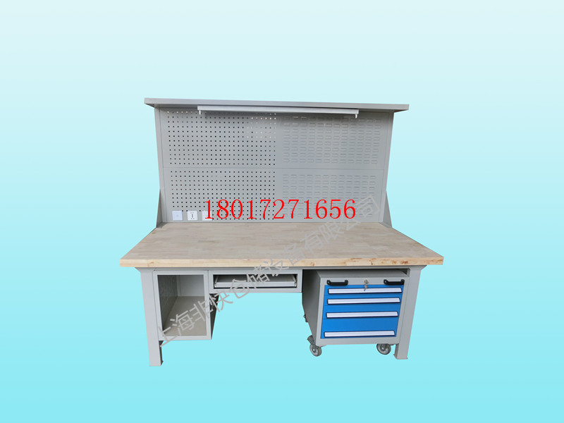 l 可加装百页挂板 方孔挂板,方便放置各类手动或电动工具和零件盒,也可以根据不同需要加装电源插座、脚轮、调节螺丝、照明灯置物搁板,也可按要求定制特殊规格及样式的工作桌。