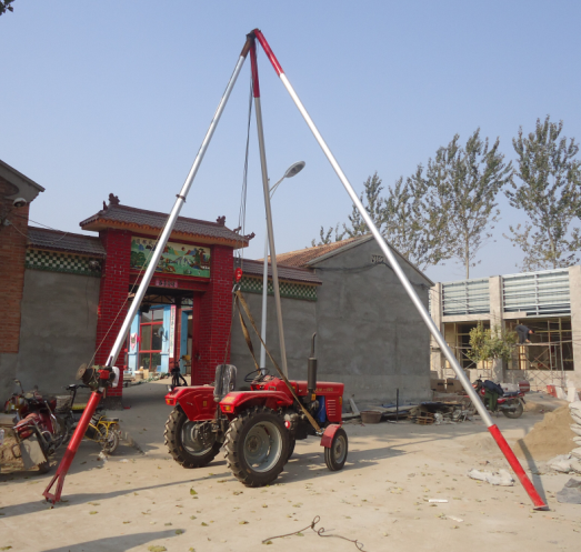 三角架立杆机?和地面形成等腰三角形,三颗杆中间的距离在保持稳定下的情况下,距离越小承重力越大。