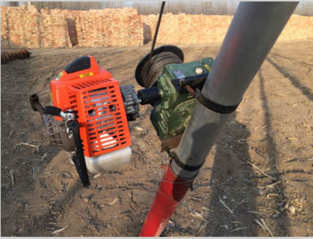 三.立杆:用钢丝套子?拴住水泥杆,单滑轮勾住钢丝套,两个人同时搅动手摇绞磨,把水泥杆自动提起来。达到**高点后,下放入坑,下放时,一只手搬起?绞磨后面的克齿即可。