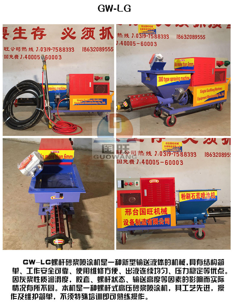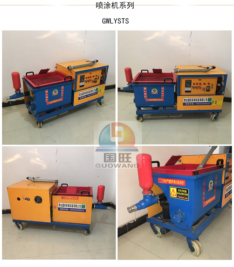 1、适应喷涂材料:腻子粉、涂料、拉毛、水泥砂浆、砂浆、保温材料、防水材料、防火材料、隔热材料、吸音材料等水溶性材料。