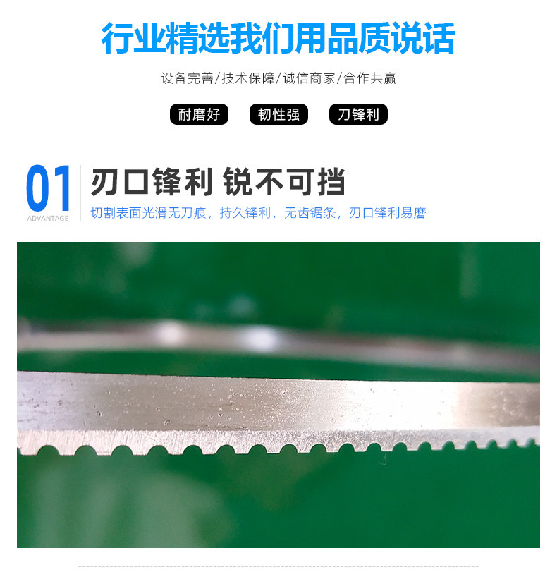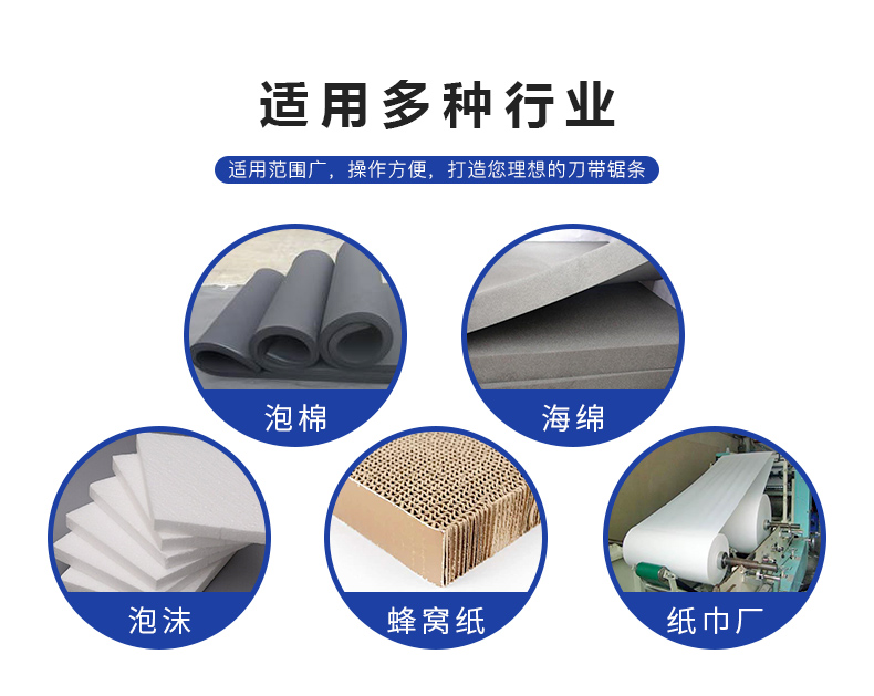 塑剖层刀、片皮刀、锯骨机带锯条、木工带锯、圆刀片等。产品广泛应用于海绵厂、聚氨脂厂、食品汉堡吐