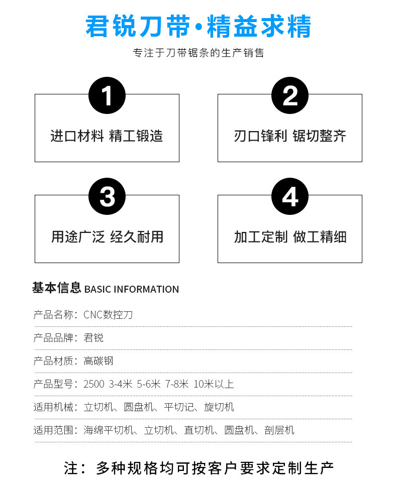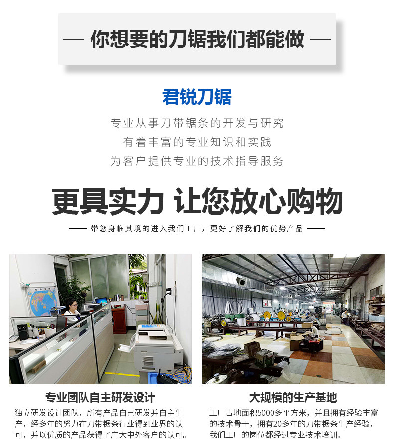 东莞市君锐刀锯有限公司是一家专业生产、加工、销售各种带刀、带锯的厂家,主导产品有切割海绵刀、电