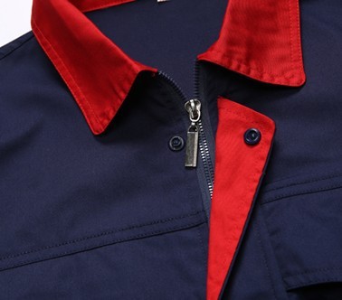 深蓝色的面料配上红色面料的领子,立体丰满,尽显不凡品质细密平滑的拉链穿着更加方便