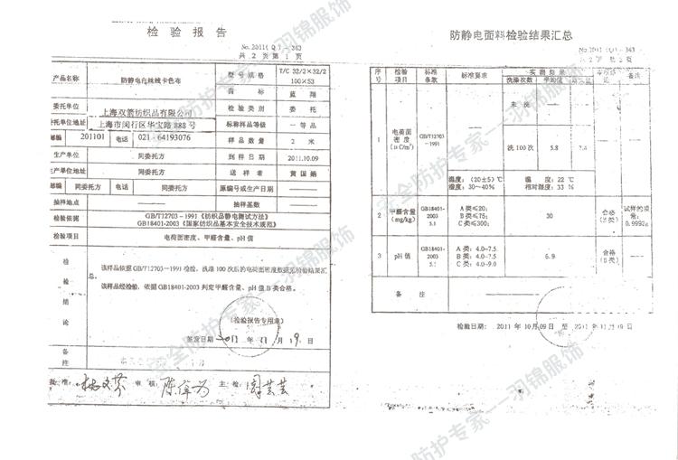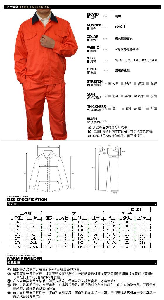 本公司供应防静电工作服,品牌羽锦,型号YJ-6011。参数为:适用性别:男女均可,产品类别:套装,适用场合:防护工装,功能:防静电,尺码:其它,季节:其它。质量保证,欢迎咨询洽谈。