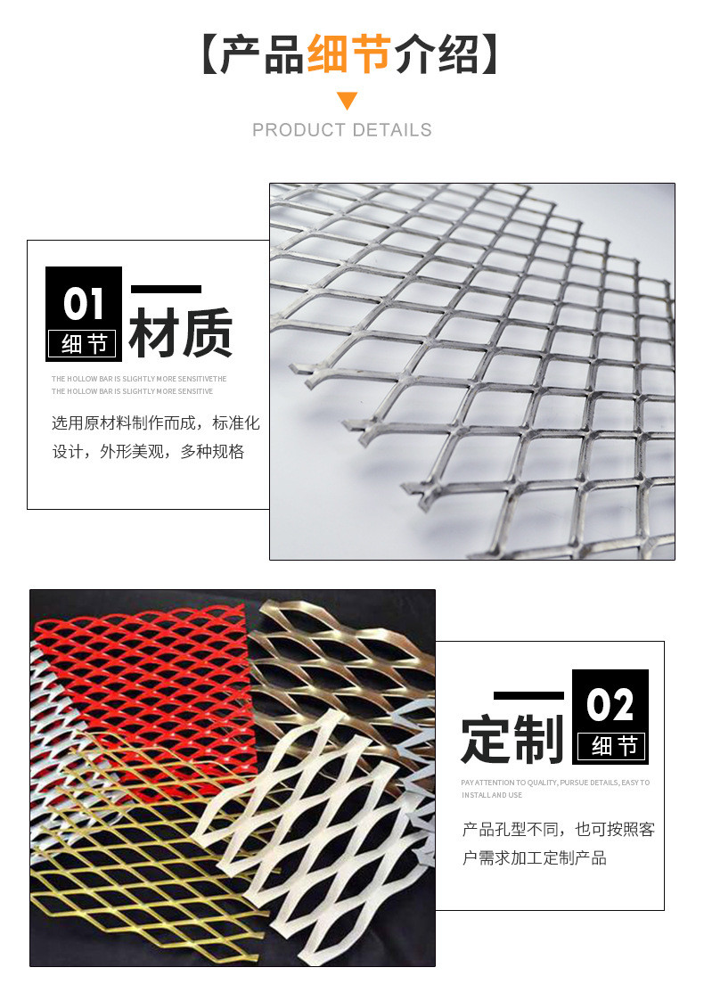 重型钢板网材质:Q235低碳钢板材、304不锈钢板材、316不锈钢板材、316L不锈钢板材。