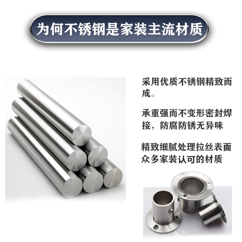 304不锈钢法兰座加厚高脚开口浴帘毛巾晾衣杆衣柜挂衣杆固定管座