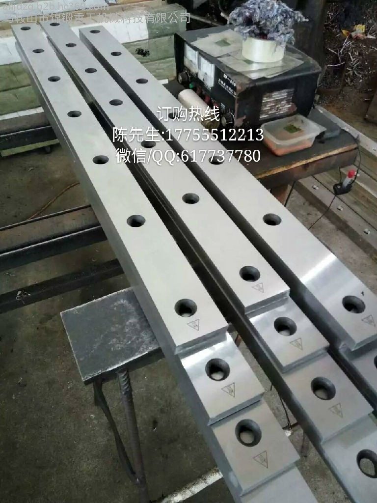 剪板机刀片所选材料共分三大类:碳结工具钢、低合金工具、合金工具钢等。碳结钢一般选用65、75号钢,T8、T10等材料,此材料生产的刀片热处理硬度HRC57—59度范围内,适用于普通低碳冷轧板、普通A3板材与废料的回收剪切,此特点是成本低,产品价格适宜。低合金工具钢的刀片常用的材料为:6Crw2sI、Cr5Mo1V、9CrSi、Cr12MoV等,刀片的热处理硬度为HRC58—62度范围内,专剪不锈钢,适用于热轧板、不锈钢、中、厚板的剪切。合金工具钢的剪板机刀片材料有:4Cr5MoSiV1(H13K)、7Cr7Mo2V2Si9(LD)、W6Mo5Cr4V2(6542)、H13等。此种材料的刀片用于热轧钢坯,热剪切中、厚钢板等,此特点是抗高温,不易退火,用于钢厂的热轧,热剪切工艺。剪板机刀片一般分为脚踏剪板机刀片,机械剪板机刀片,液压剪板机刀片,剪板机刀片价格**剪板机刀片,保质量剪板机刀片,剪板机刀片出口。剪板机刀片加工,二手剪板机刀片,剪板机刀片批发,可根据客户要求制定非标准剪板机刀片。材质保证,售后无忧。