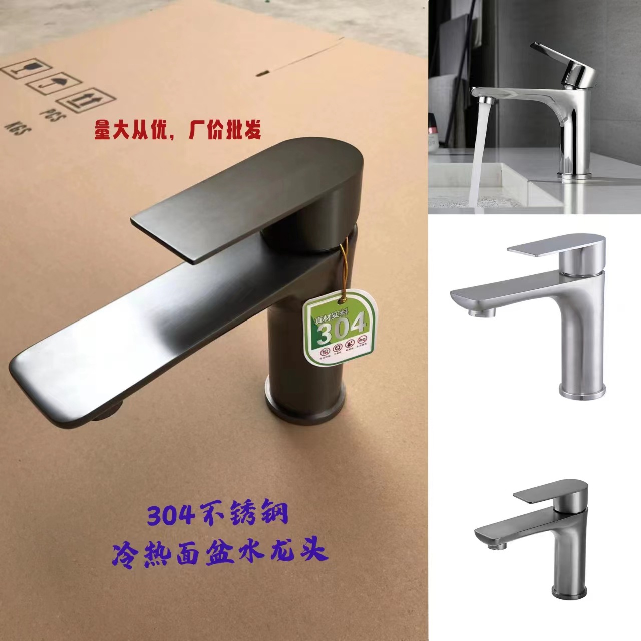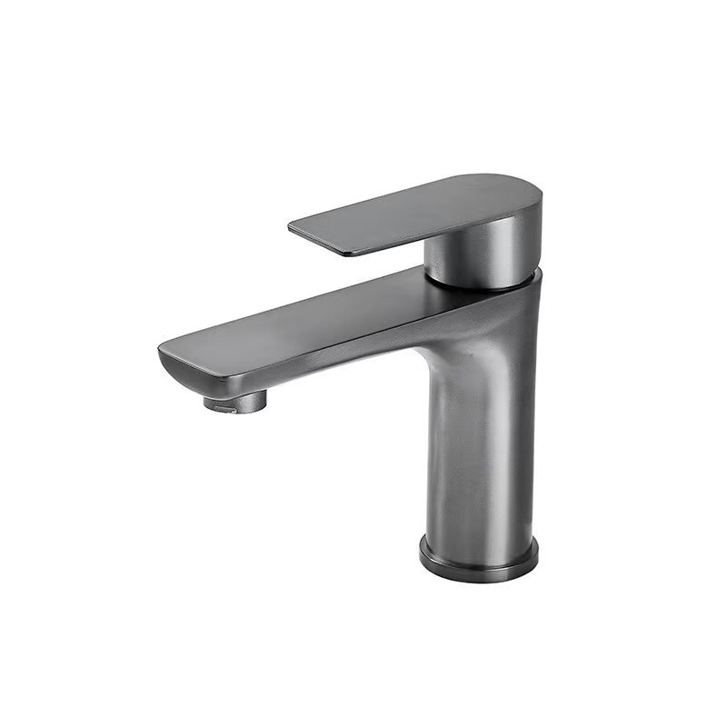 枪灰黑色拉丝金镀洛冷热面盆水龙头304不锈钢平板洗手盆单孔龙头