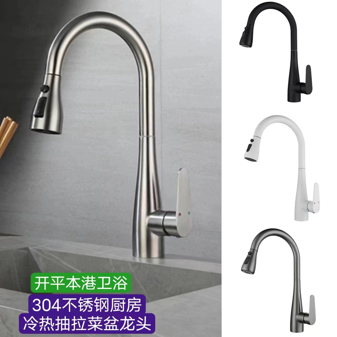 304不锈钢抽拉洗菜盆水槽龙头家用厨房镀黑色伸缩式洗碗盆水龙头