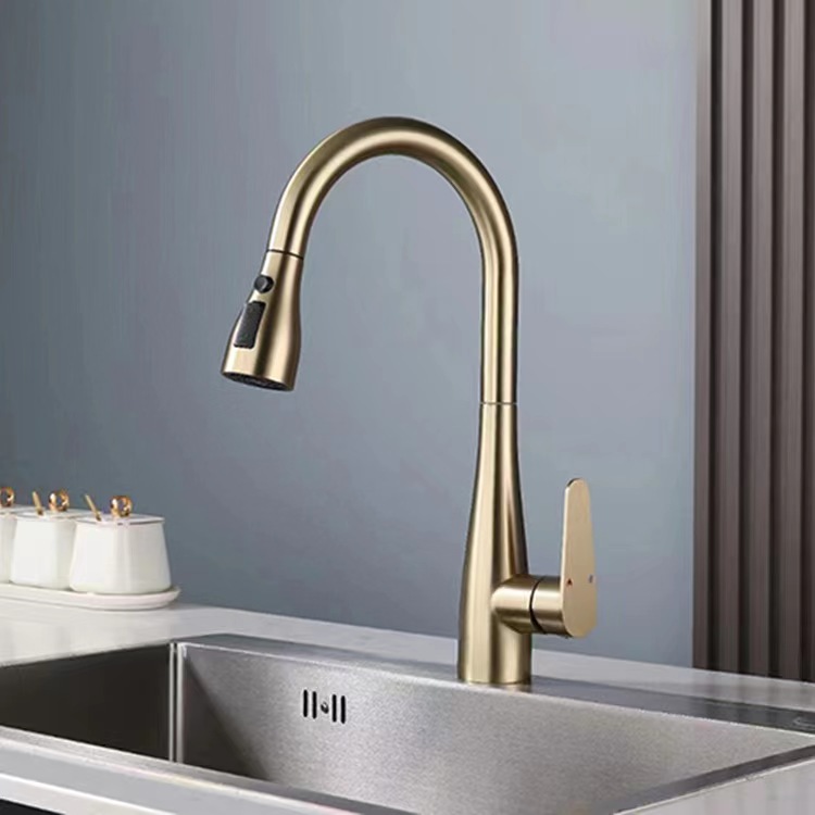跨境拉丝金色厨房冷热大弯龙头带滚珠洗菜盆洗碗池七字旋转水龙头