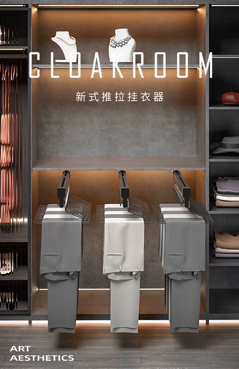 衣柜伸缩抽拉裤架多功能滑轨裤抽挂裤子收纳铝合金衣裤架拉 杆厂家