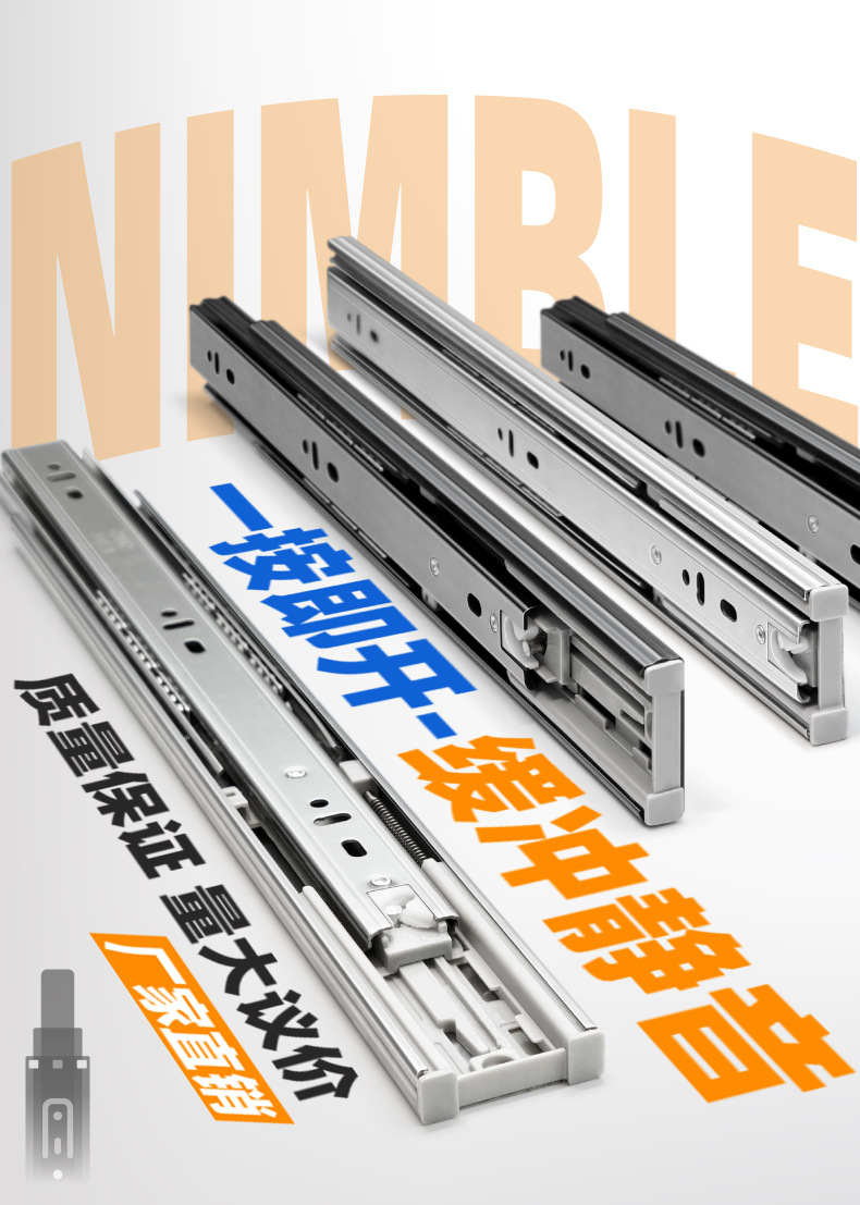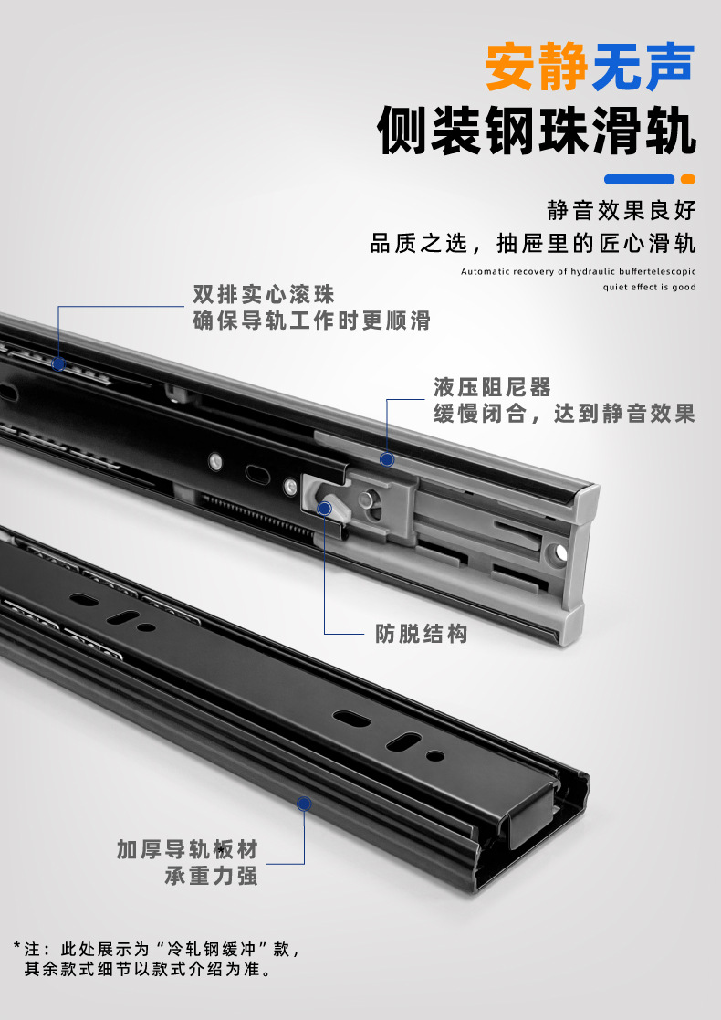 抽屉不锈钢滑轨缓冲阻尼导轨家具橱柜轨道衣柜钢珠三节轨厂家直供