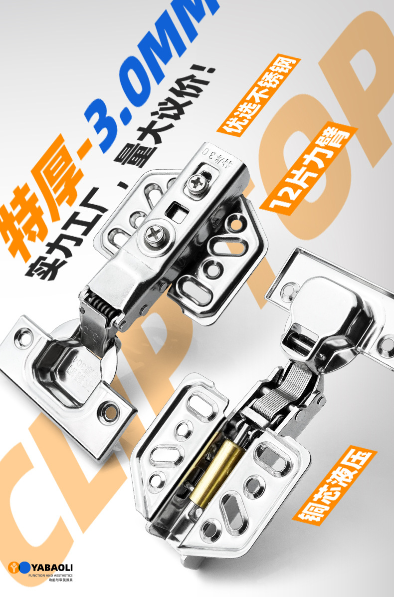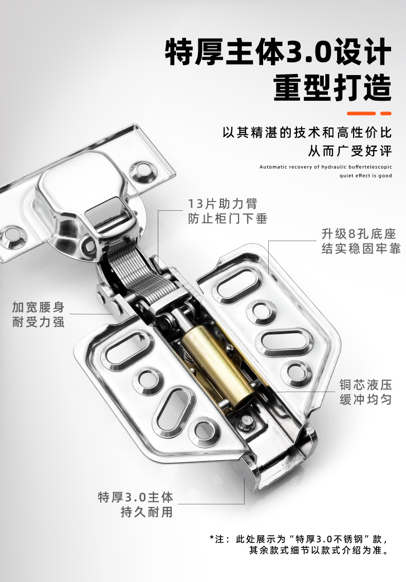 橱柜柜门304不锈钢铰链缓冲阻尼液压加厚二段力飞机合页五金配件