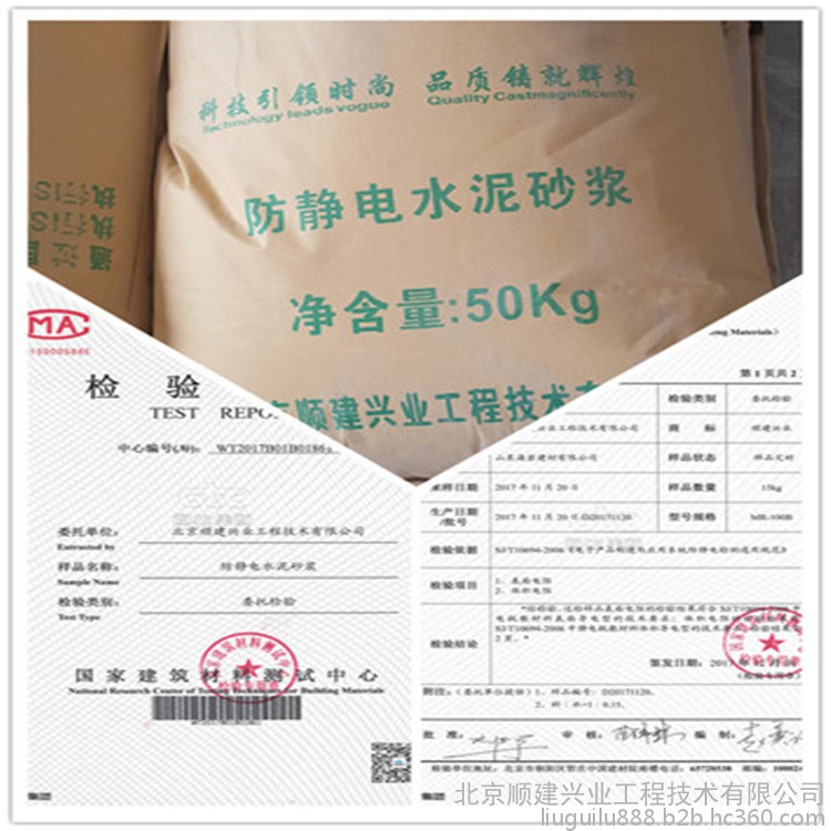 特种防静电水泥砂浆是我公司配置的特种导静电水泥砂浆,在工厂预拌的粉剂,可在工地直接加水搅拌使用。它含耐磨骨料(珠光体可锻铸铁和导电体)、拉法基(波特兰水泥)及用于提高施工性能的外加剂、该金属骨料和导电体是严格级配并不含杂质。这些成份具有较高的导电能力和耐磨特点。导电相材料:在众多的导电材料中,碳质骨料适宜作为导电砂浆的骨料,可取代部分骨料掺入,或作为单独组分直接掺入。用于导电相材料时,碳纤维通常可直接作为砂浆的一种组分掺到砂浆中导电细骨料主要有石墨、炭黑和焦炭等,以比表面积来控制细度。细骨料的理想级配通过实验来测得,其掺入量由所需的导电性来决定。石墨的强度高,但不能制成理想的级配并且电阻率相对较高。相对而言,焦炭则具有电阻率小、质量轻、价廉等优点。它虽然有一定的孔隙率和吸水性,但吸水率稳定,且吸水后体积不膨胀,是一种理想的导电相。不足之处是其自身强度较低。亦可使用钢纤维和铁矿石等作为导电相骨料。